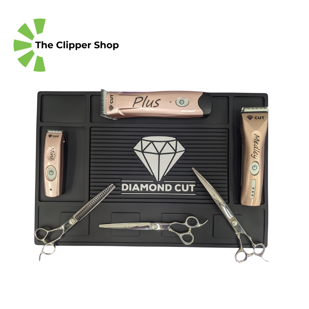 This uniquely designed tool mat features 4 extra strong magnetic squares to hold your scissors, trimmers or even your clipper blades securely in place while you groom.