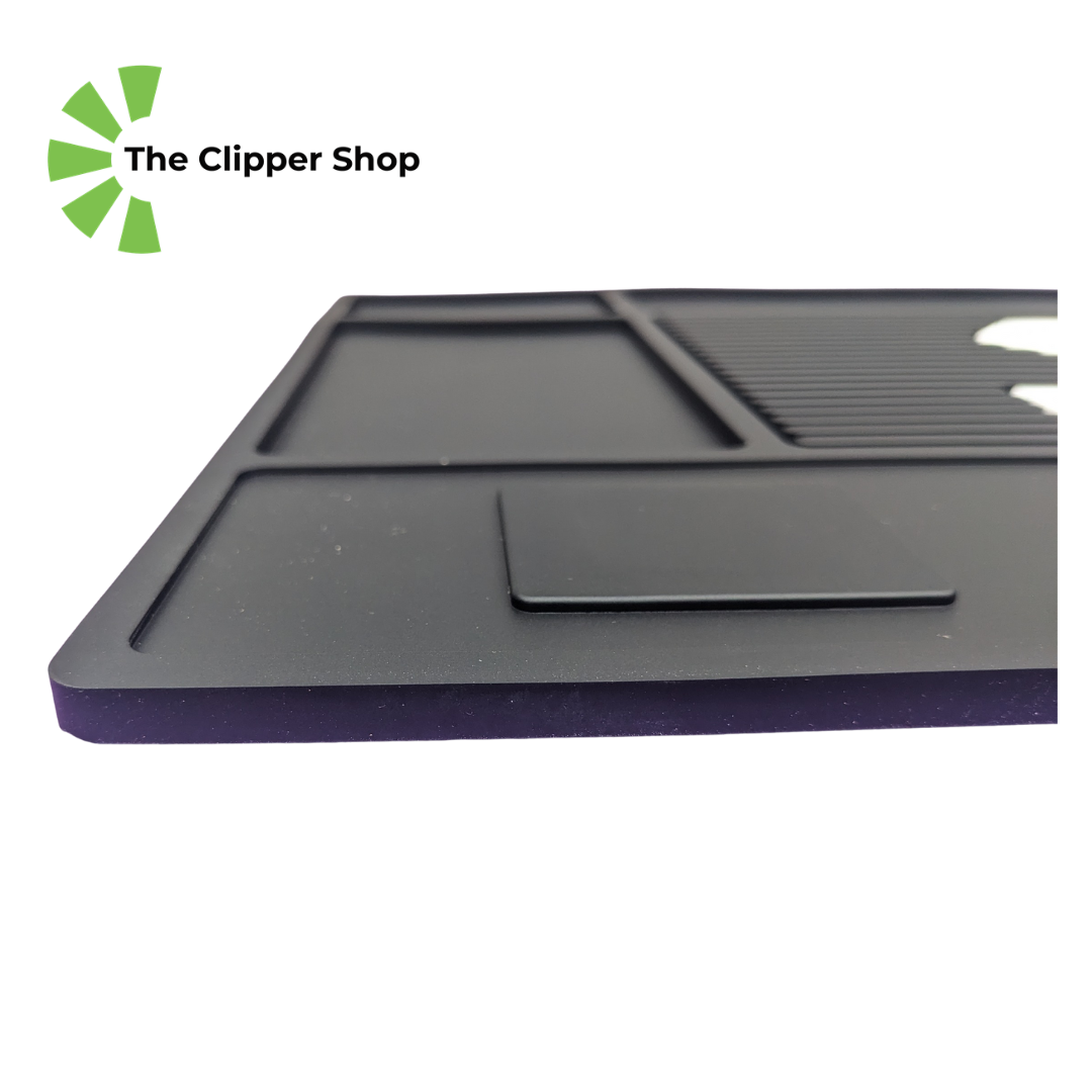 This is a heavy duty rubber tool mat measuring 45cm x 30cm x 0.8cm. More than enough room to safely place all your tools and protect them from hard knocks against your grooming table as well as magnetically secure metal based objects.