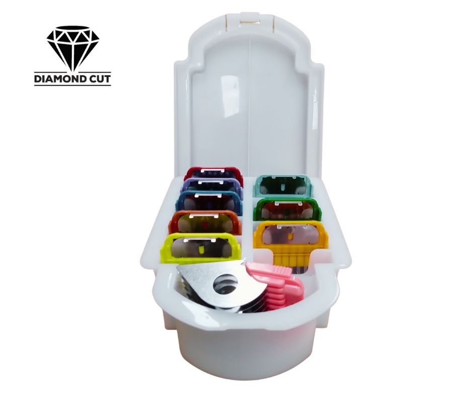 Diamond Cut Stainless Steel Attachment Comb Set of 9 with colour coded sizing - * Will fit all clippers that take standard A5 style snap on blades.