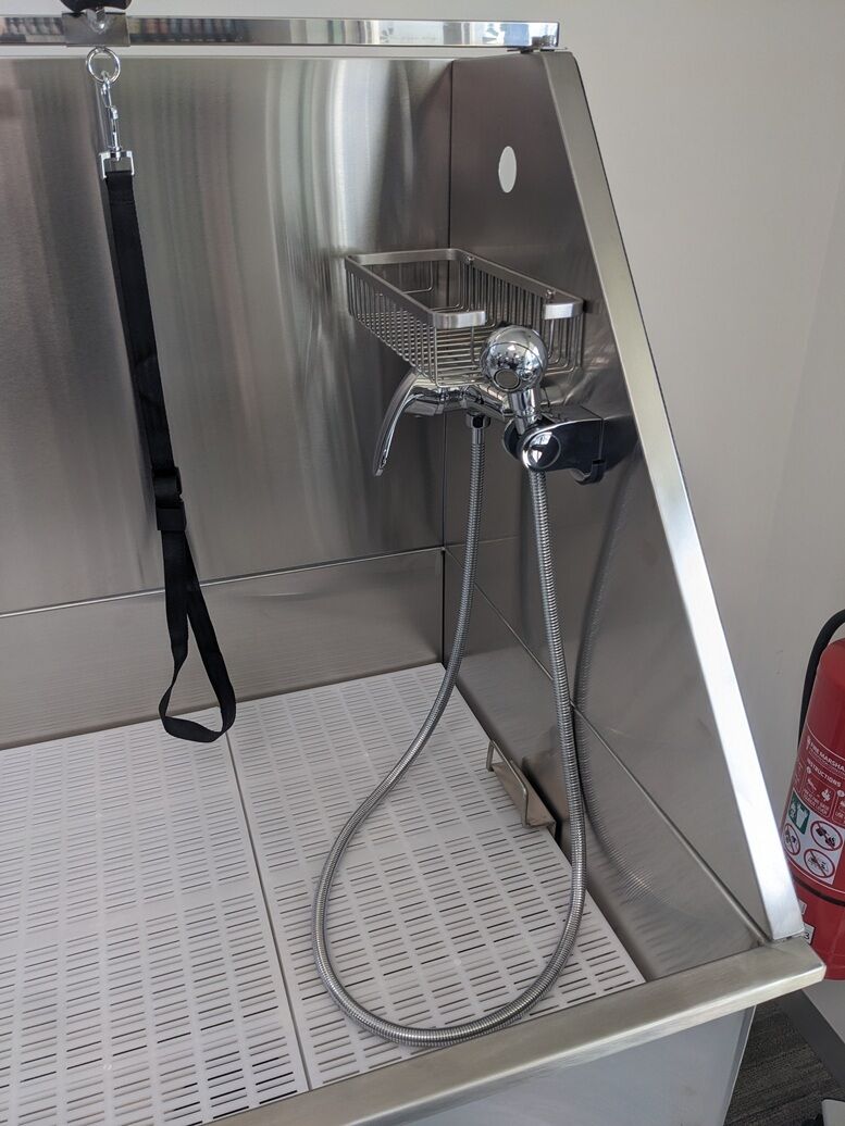 This bath also features a cross bar to which you can safely tether your dog ensuring a safe bathing experience. Also included is a water blower hose that attaches to the inside of the bath enabling you to dry your dog inside the bath and minimise water spillage in the work area.