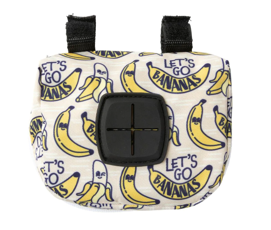 Keep your poop bags hidden away in a fun poop bag dispenser. Secure it to your dog's leash with the two velcro loops. It is super easy to pull the bags through the opening on the top, and you can even fit your keys inside and two poop bag rolls!
