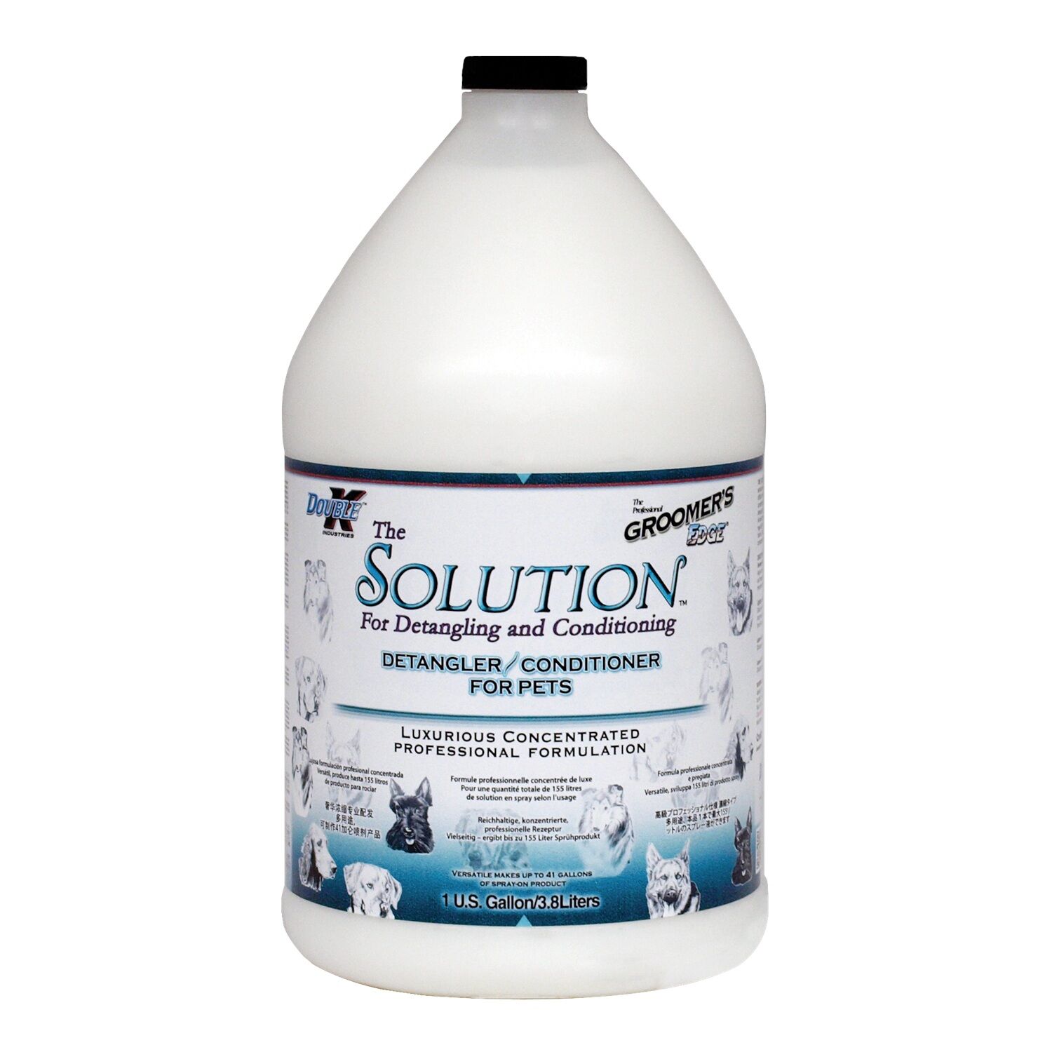 THE SOLUTION FOR DETANGLING AND CONDITIONING™ is an extraordinarily versatile product which will help detangle the most difficult mats and/or condition a wide range of coat types. Extreme concentration creates great value. May be highly diluted for leave-in detangling spray or used straight to help loosen tough mats. Humectant and emollient rich formula is gentle and may be used regularly for beautiful show ring results. Great for groomer’s/bather’s hands. Excellent for use on dogs, cats, horses, rabbits, llamas and all companion and farm animals. Versatile, Makes Up To 41 Gallons Of Spray-On Product.