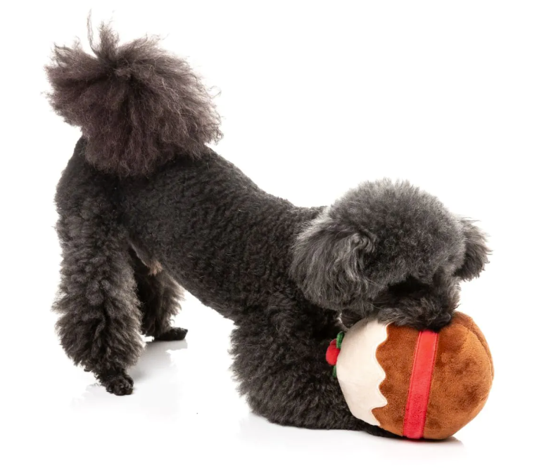 Serve up some squeaky-sweet holiday joy with Merry Puddin’, the festive dessert your pup actually gets to devour! Topped with a plush holly garnish and wrapped up with a fancy red bow, this Christmas classic is bringing all the festive charm—minus the sticky fingers (or paws). With its round, bouncy shape and an irresistible squeaker inside, this pud is ready to roll into playtime, cuddle time, and everything in between. Whether your pup is tossing it around or snuggling up after a holiday feast, this plushy treat is the cherry on top of the Christmas fun!