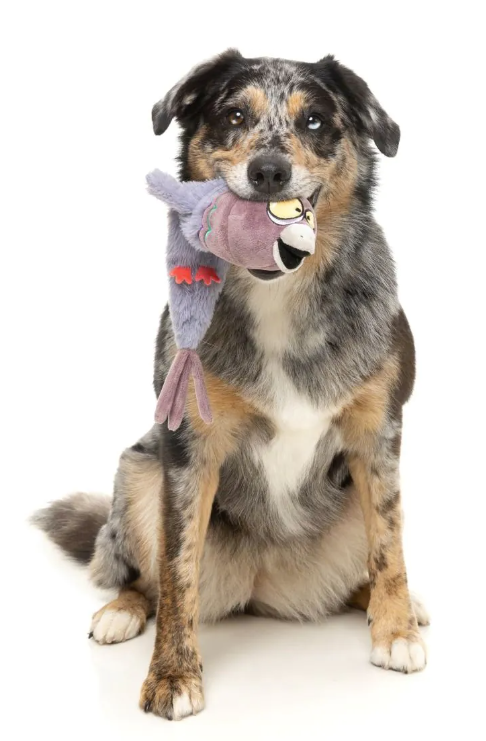 This pigeon knows how to stay coo-l. Peace Out Pigeon is the chillest member of the Yeetz! Our exciting new, swing and throw plush dog toy range!