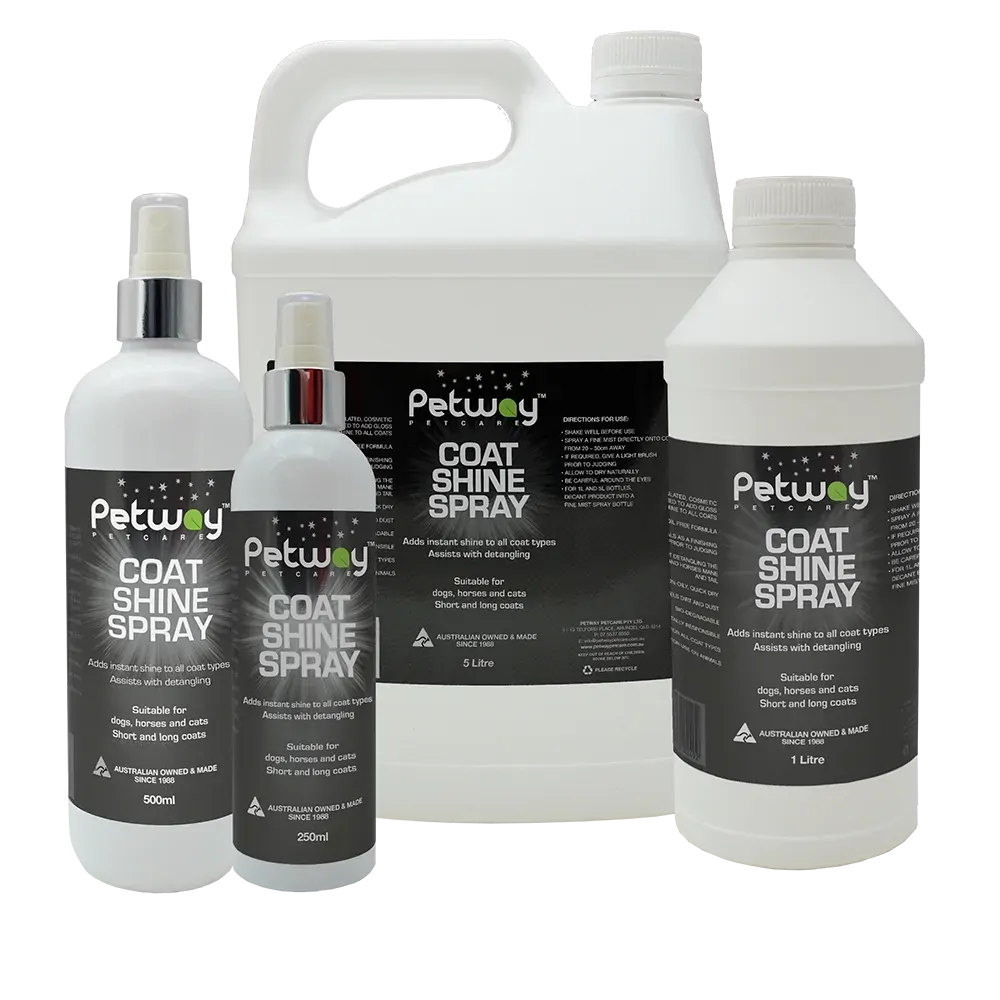 Bring out the natural beauty of your animal’s coat with Petway Petcare’s Coat Shine Spray — a lightweight, oil-free finishing spray that delivers instant gloss without greasiness. Scientifically formulated to a cosmetic-grade standard, this environmentally responsible spray enhances shine, repels dirt and dust, and assists with detangling for easier grooming.