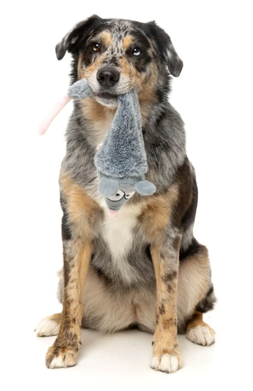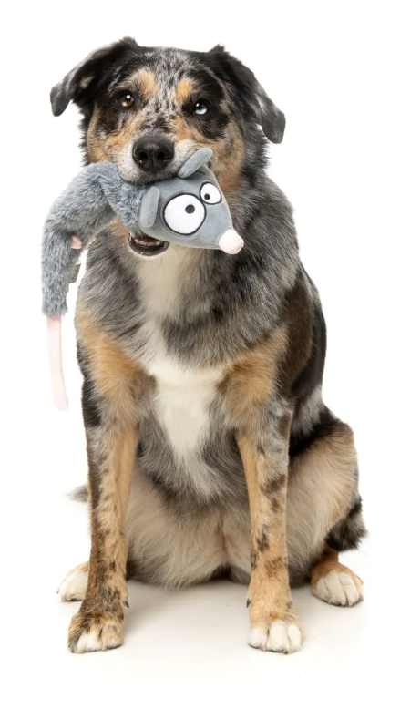 This rat-ical legend gets all the attention. Rack off Rat is the friendliest member of the Yeetz! Our exciting new, swing and throw plush dog toy range!