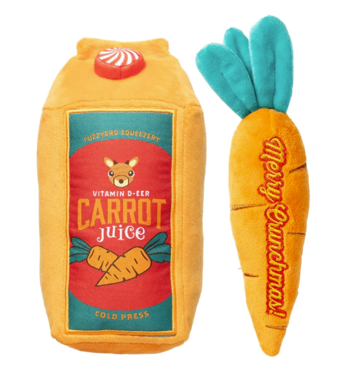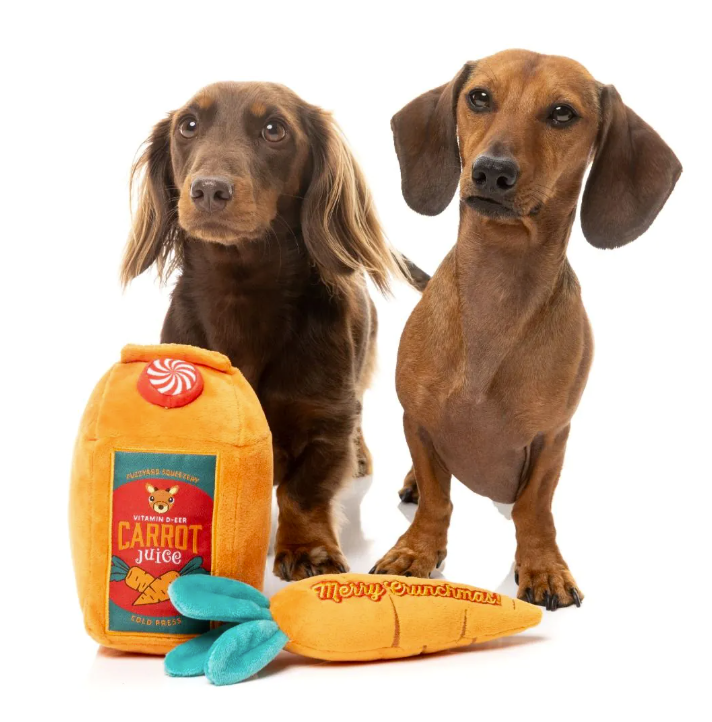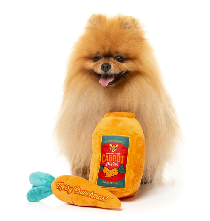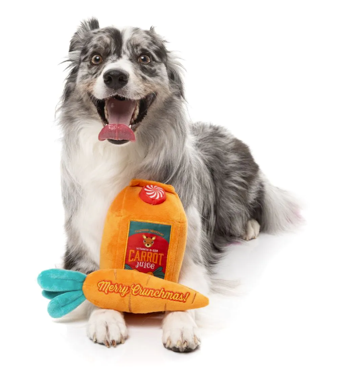 The official fuel of Santa’s reindeer is now available for your pup—with extra squeak! Reindeer Carrot Juice & Carrot is packed with festive crunch, featuring a plush juice carton and a squeaky carrot that’s way more fun than the real thing. Hydration? Maybe not. Holiday chaos? Absolutely.