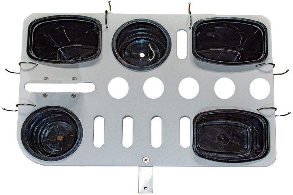 3 - Plastic Container Slots (interchangeable) Includes 3 - 6 inch depth and 3 - 2.5 inch depth with lids