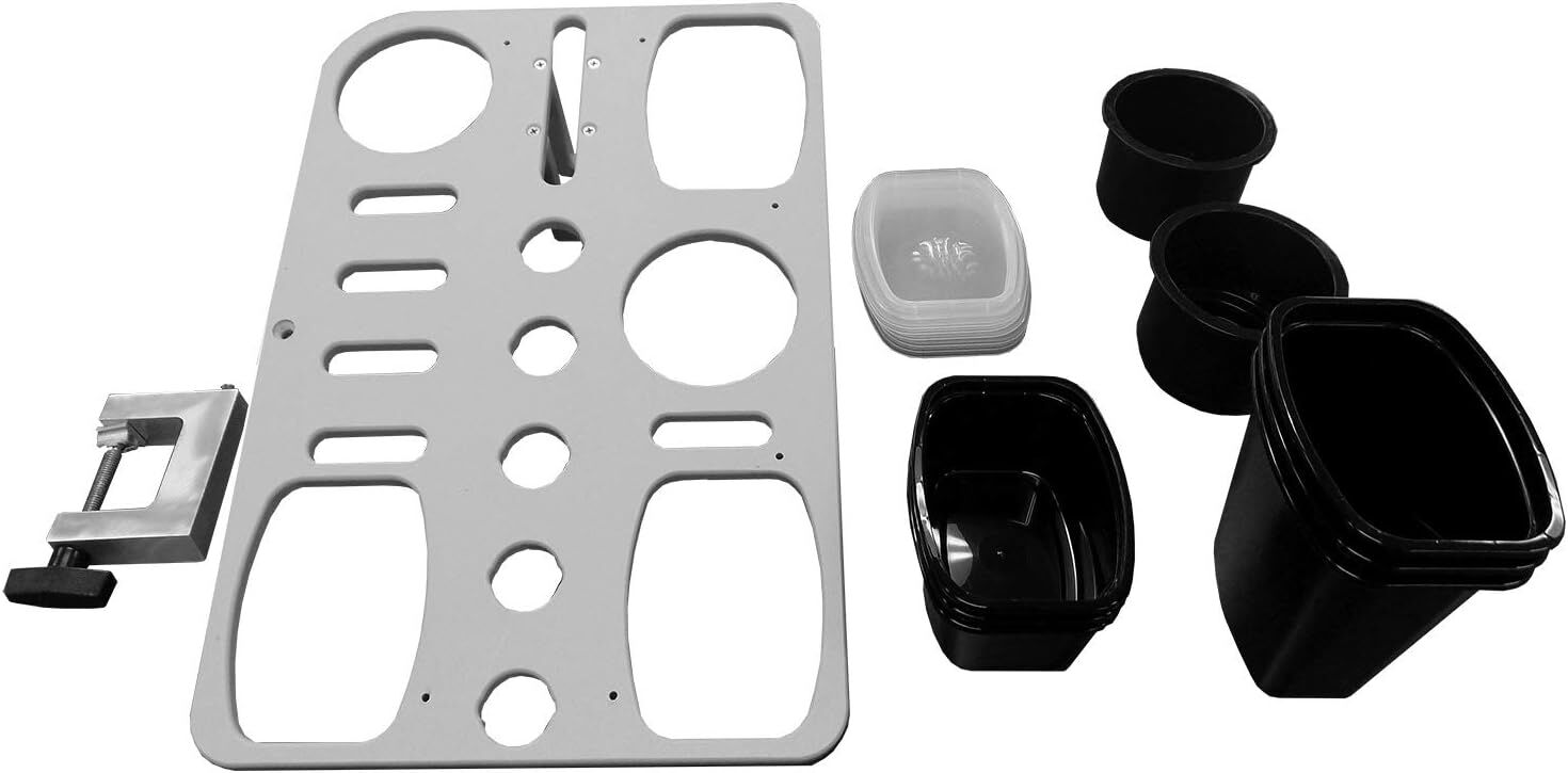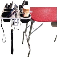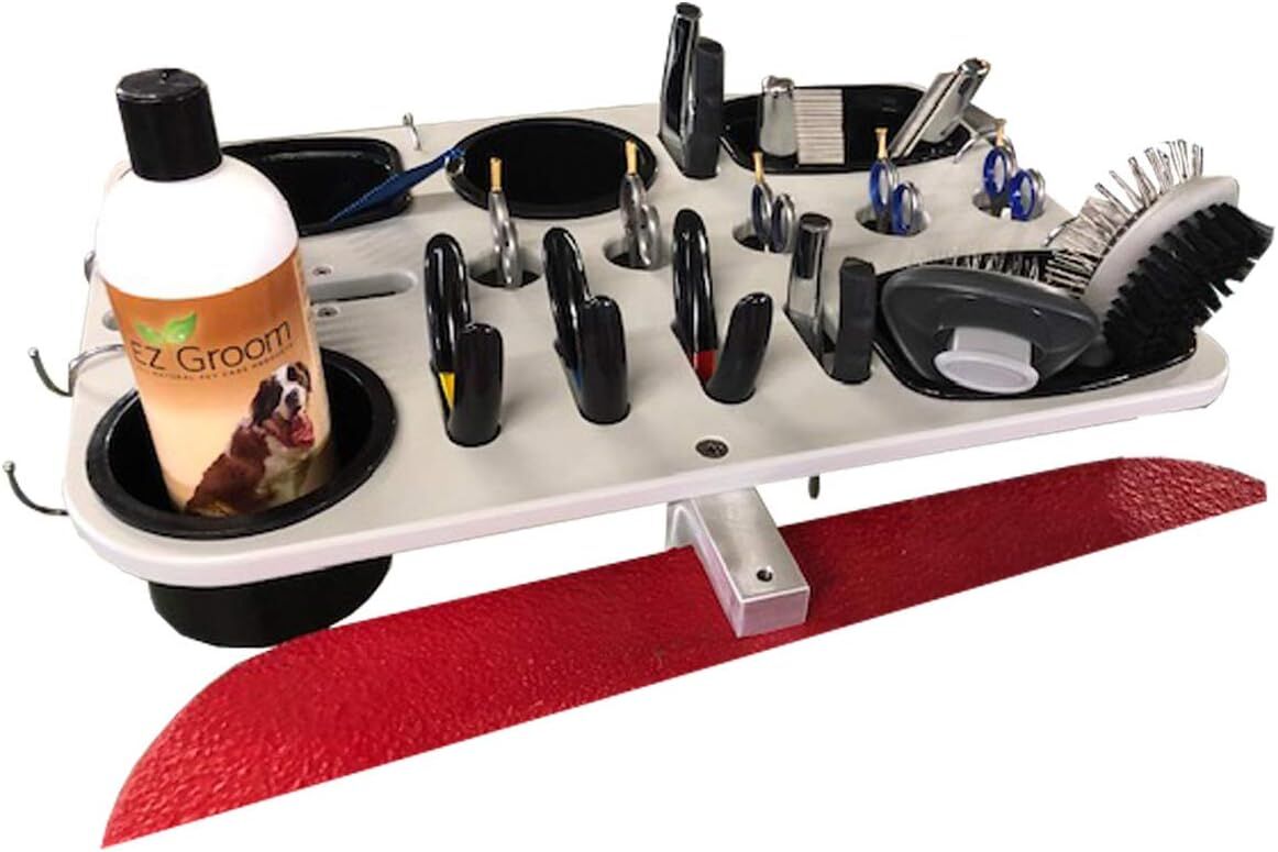 The US-MADE Resco Grooming Table Tool Holder is designed for serious professionals. Having all your tools in one place saves time and money! Comes fully equipped for the 21st century sporting a cellphone holder, 2 cup holders, and 6 containers. Use this to set up your Amazon Echo or Google Home for an even more enjoyable grooming experience!