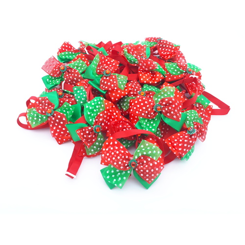TCS - Christmas Organza Polka Dot with Jewel Dog/Pet Adjustable Neck Bows - 25pcs