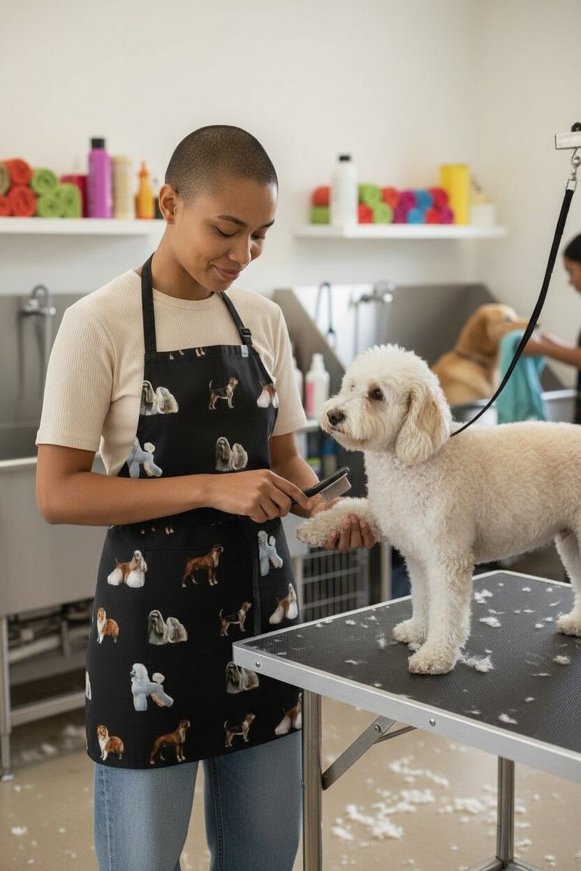 COMFORTABLE GROOMING – Grooming pets can get messy and anyone who has spent time with pets knows that. Aprons are an essential part of grooming and aprons are a must when bathing dogs.