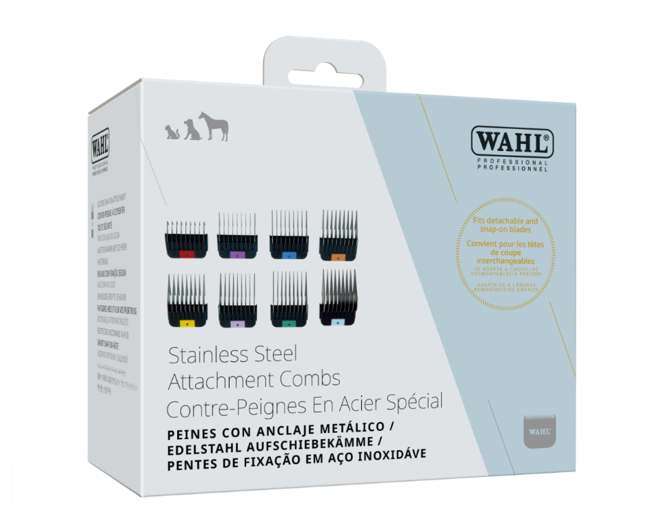 Upgrade your grooming kit with Wahl’s High-Quality Stainless Steel Attachment Combs, designed to seamlessly fit detachable clipper blades (Competition and Prime Series). These high-quality combs securely snap-on, ensuring Snag-Free grooming and precise cuts every time. Built for durability and performance, they provide consistent cut length control while standing up to daily use.